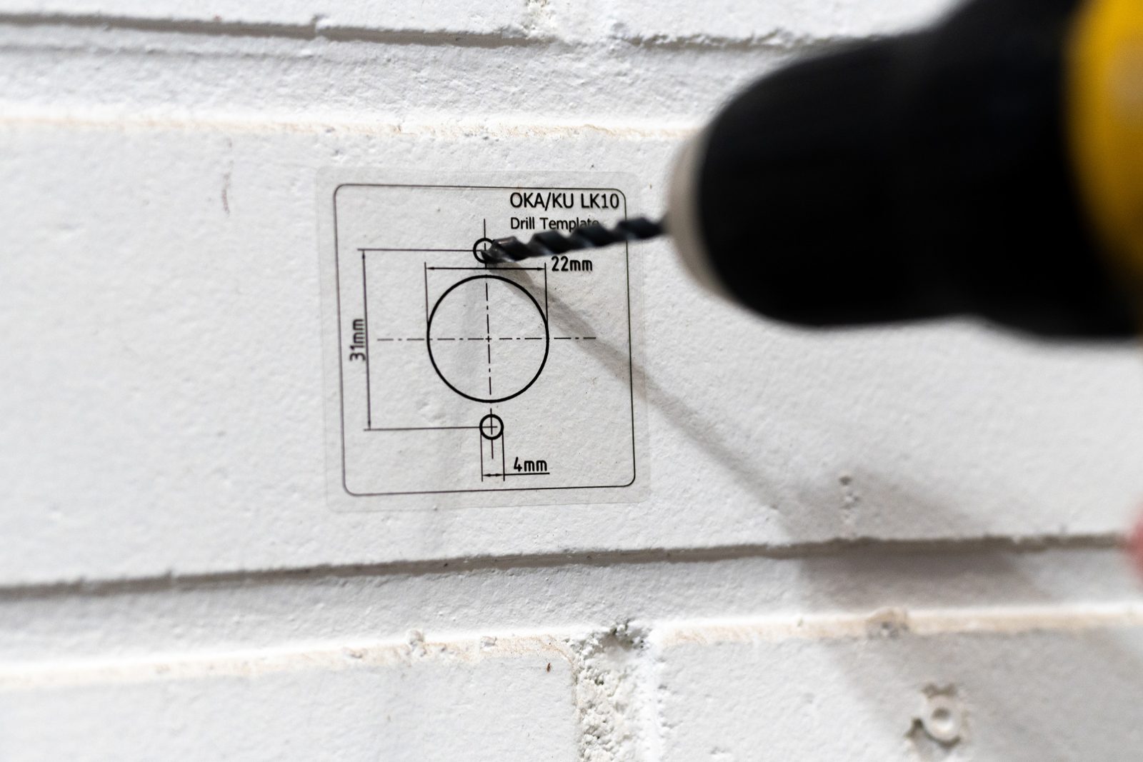Moni asia on kätevää ja edullista ratkaista tarran avulla. Eräs asiakkaamme haluaa varmistaa, että asennusta varten porattavat reijät tulevat oikeisiin kohtiin. Porauskohdat on merkitty painatuksin, asemointia helpottaa läpinäkyvä tarramateriaali, liima pitää tarran hyvin paikoillaan mutta se on helppo irrottaa siististi ilman liimajäämiä.